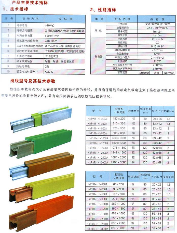 3、HXPnR-H型有鋁合金和銅體兩種材料的滑線。